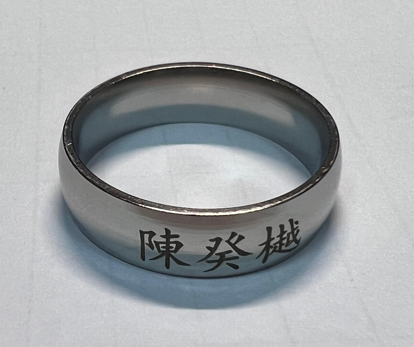 Chinese letters maximum 3 on ring or pendant.